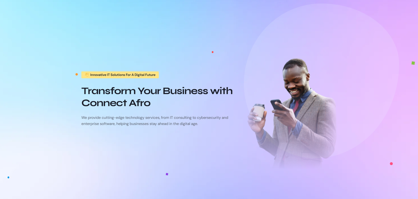 Connect Afro is a leading technology solutions provider committed to driving business transformation through innovative IT services and solutions. With years of experience in the technology sector, we offer comprehensive services tailored to meet the unique needs of businesses across various industries. Our focus is on delivering cutting-edge IT consulting, enterprise software solutions, cybersecurity, data management, document digitization, and IT infrastructure services that empower our clients to stay ahead in the digital age.